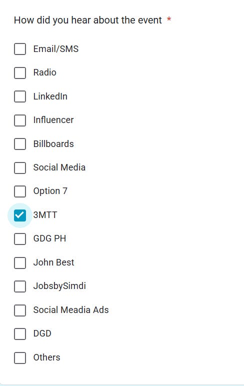 When you are filling out the form, please make sure you select that you heard about this from 3MTT. That helps us track and support you better.